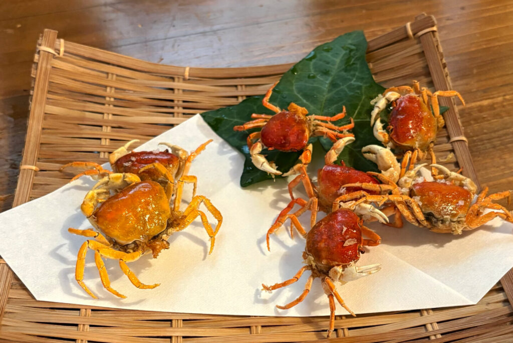 The photo shows deep-fried freshwater crabs—so fresh they almost look alive, which might be a bit much for some people.